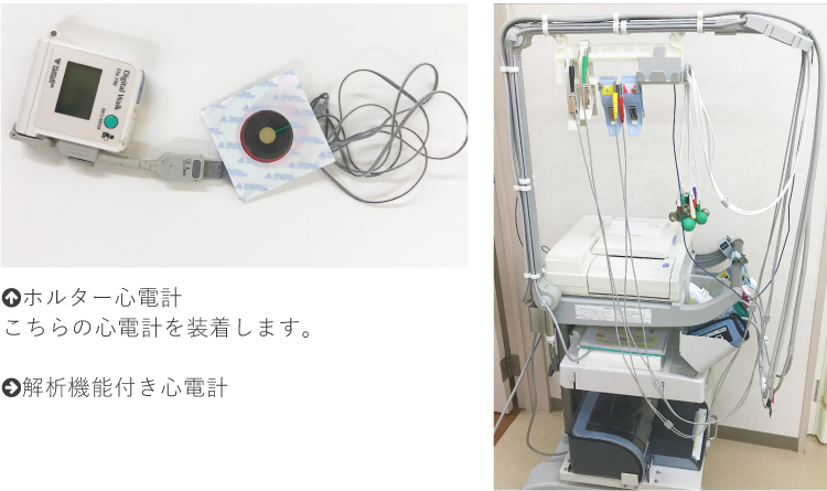 携帯用の小型心電図計を装着して普段通りの生活をしていただき、24時間にわたり心電図を記録する検査です。この心電図の解析を通して日常生活における心臓の動き(拍動)を調べ、異常がないかを検査します。
